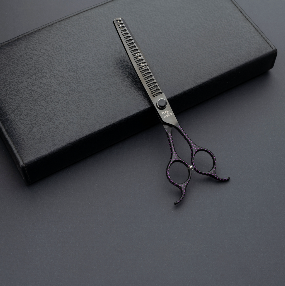 🖤 Matte black handle with pink polka dots and matching black blades
